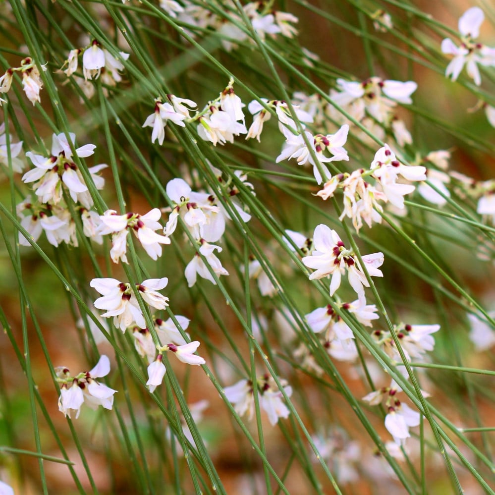 الأزهار: بيضاء صغيرة تظهر على الاغصان.