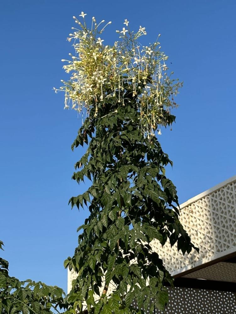 شجرة الياسمين ميلينقتونيا شجرة عطرية فواحة، هي إحدى أنواع أشجار الياسمين الجميلة، شجرة معمرة مزهرة دائمة الخضرة ذات تاج ممدود من الفروع, لها زهور بيضاء تظهر على شكل عناقيد كبيرة، تنبعث منها رائحة عطرية زكية في الليل، مناسبة في الحدائق والمتنزهات وعلى جوانب الطرق، تزرع لجاذبيتها وجمالها ورائحتها الزكية.