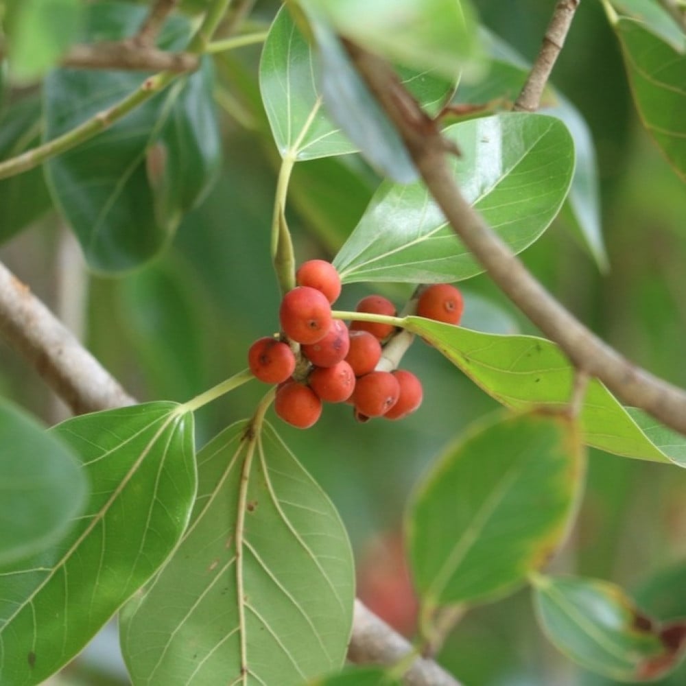 الفاكهة: تنتج الثمار تاخذ شكل الكرة اشبة بالتين ، ويبلغ قطرها 1-2.5 سم ، وتتحول إلى اللون الأحمر أو البرتقالي عندما تنضج.